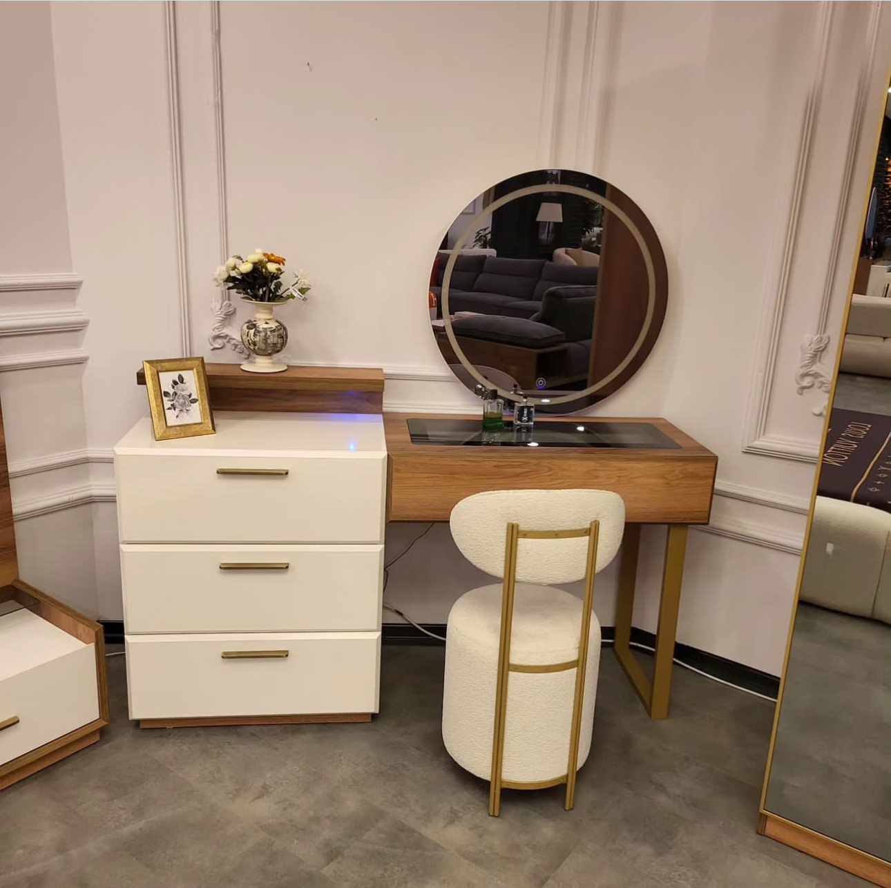 شامل تخت،دو عدد پاتختی،میزآرایش،صندلی